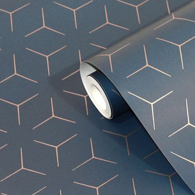 Papier Peint Vinyle Sur Intisse Lutece Geometrique Bleu Fonce