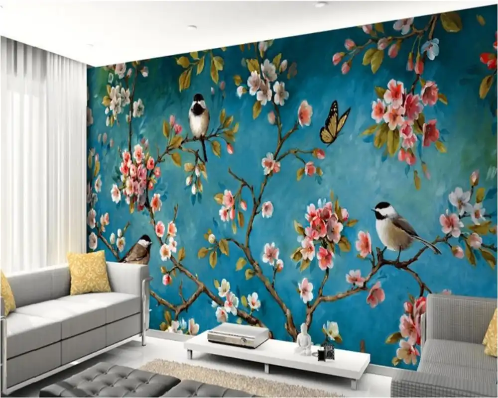 Beibehang Custom Frescoes Chinese Flowers And Birds Background