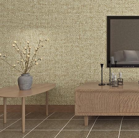Papier Peint Imitation Lin Beige Jaune Moderne Minimaliste Non