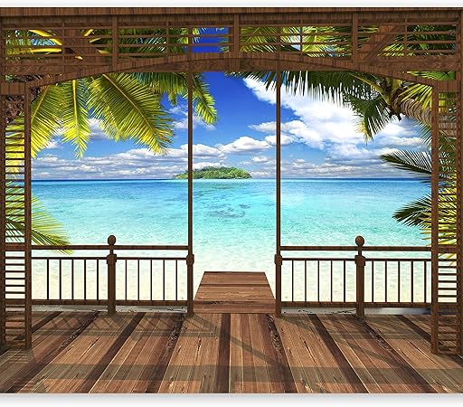 Papier Peint Intisse Plage Mer 350x256 Cm Trompe L Oeil Deco Mural