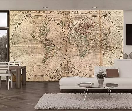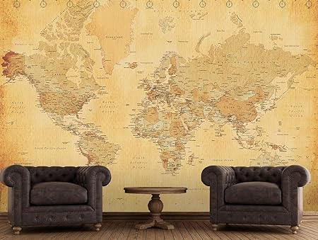 1 Wall Papier Peint Mural Avec Motif Carte Du Monde Vintage