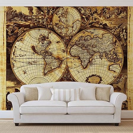 Papier Peint Mappemonde Vintura Carte Du Monde Esprit Vintage