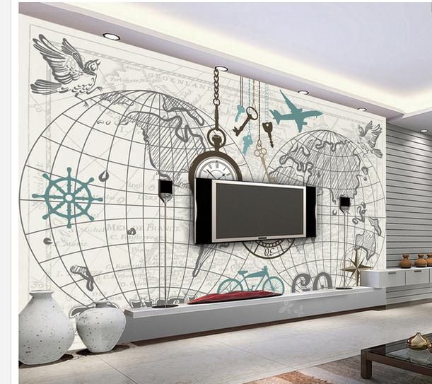 Hanjiming Murale Personnalisee 3d Papier Peint Vintage Carte Du