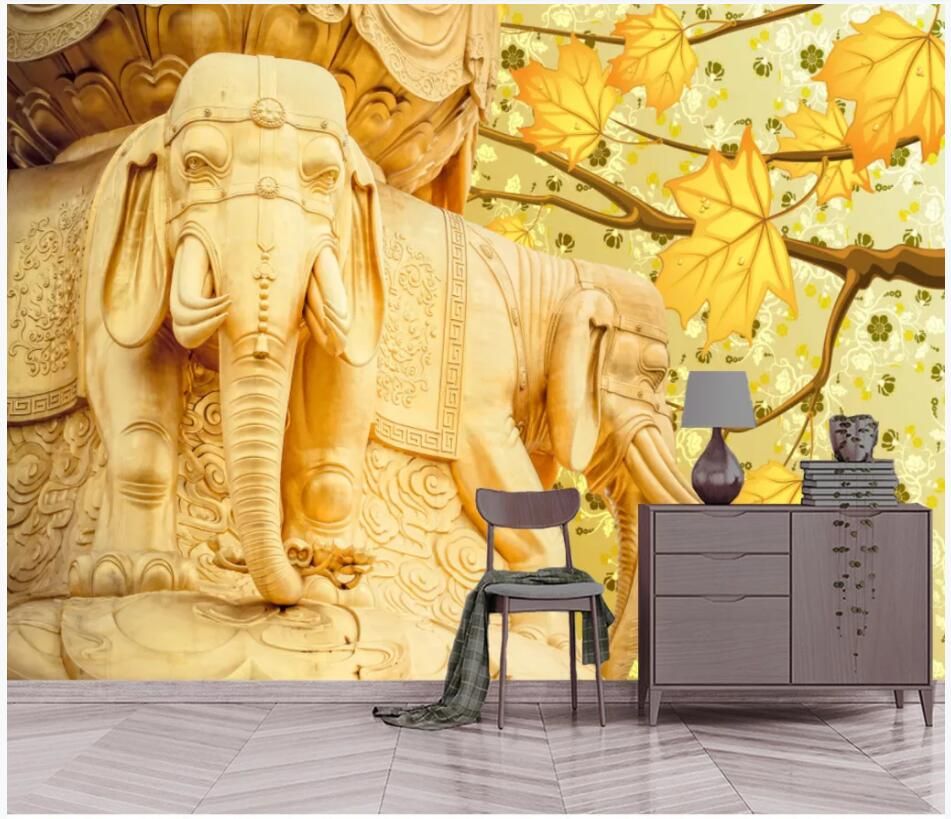 Acheter Wdbh Papier Peint Photo 3d Feuille Derable Delephant Dor